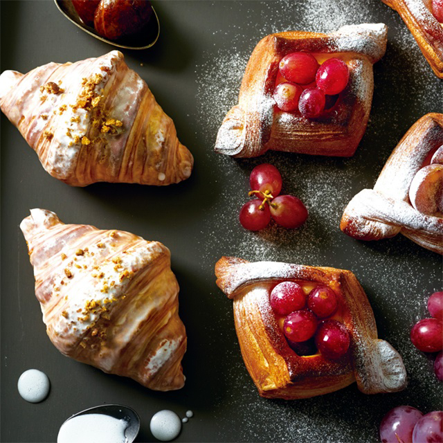 クロワッサン生地に自家製カスタードクリームを絞り、ぶどうをトッピング。