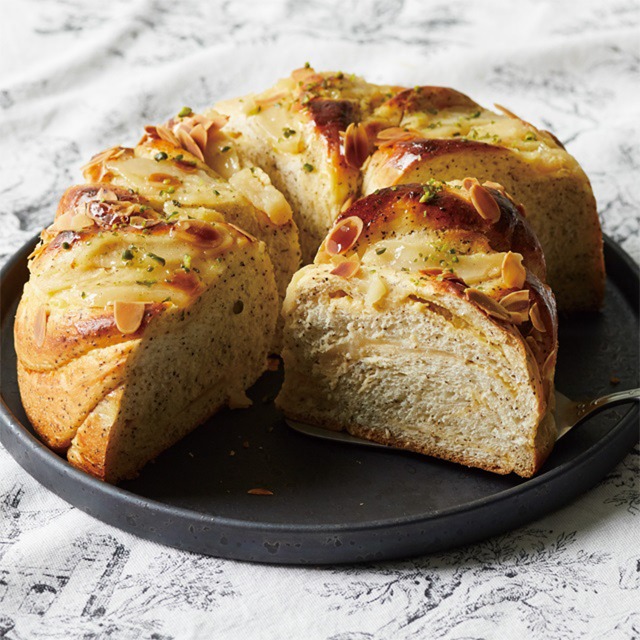 バニラ風味の洋梨コンポートとカスタードクリーム、アールグレイの茶葉を生地に練りこみ焼き上げました。