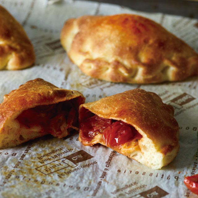 トマト、モッツァレラ、バジルを包みカルツォーネに仕上げました。