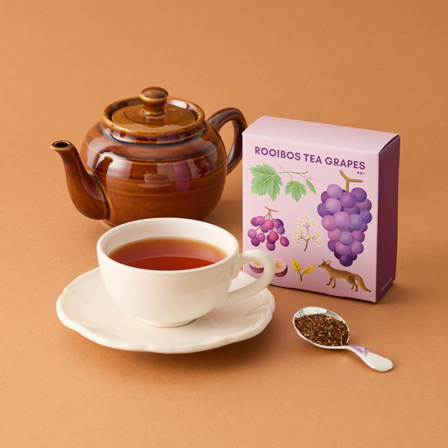 甘みと瑞々しさをイメージしたグレープが香る、ほんのり甘いルイボスティーと爽やかなグリーンルイボスティーをブレンドしたノンカフェインティーです。