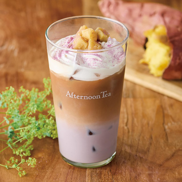 さつまいもミルクティーに優しい甘さのむらさき芋ペーストを合わせ、コクのあるハニーバターホイップ、紅あずまをトッピング。