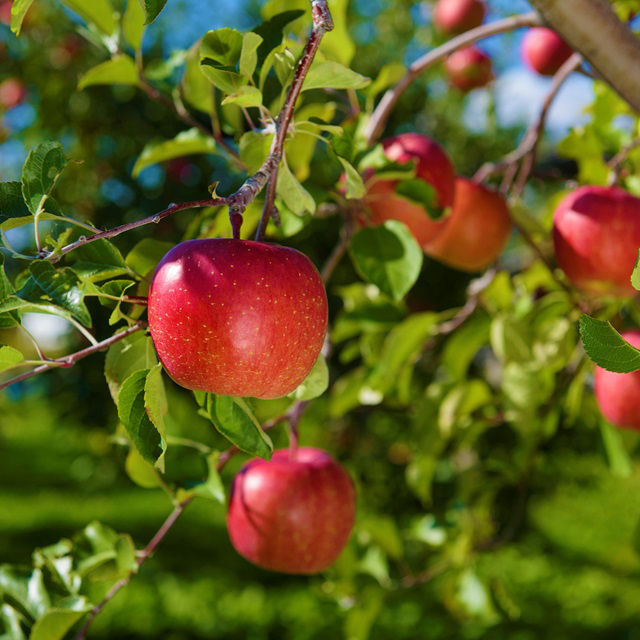 国内のりんご収穫量の約6割を占める“日本一のりんご王国”青森県。「青森りんご」は豊かな自然の中、りんご栽培150年で培ってきた確かな技術と生産者の愛情を受けて育ちます。また、秋口の昼夜の寒暖差によって実が引き締まり、みずみずしくジューシーで甘いりんごになります。