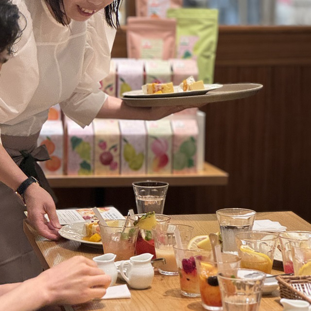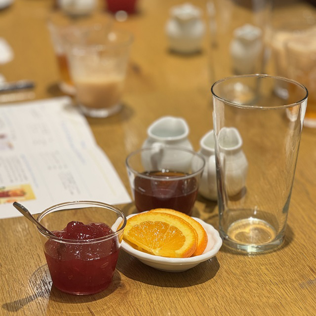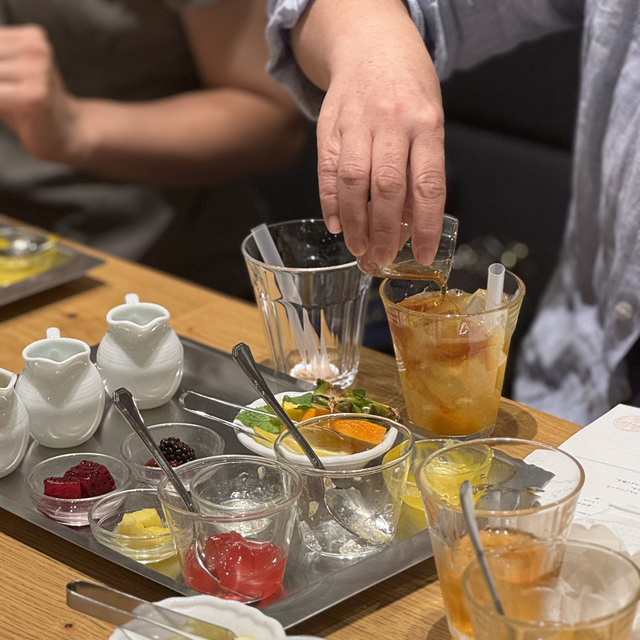 アレンジレシピを楽しんだ後は、2種のスイーツの盛り合わせが登場。ご自身で作った「オレンジアールグレイのスパークリングジュレッティー」や、定番の「アフタヌーンティーブレンド」と一緒にお楽しみいただきました。