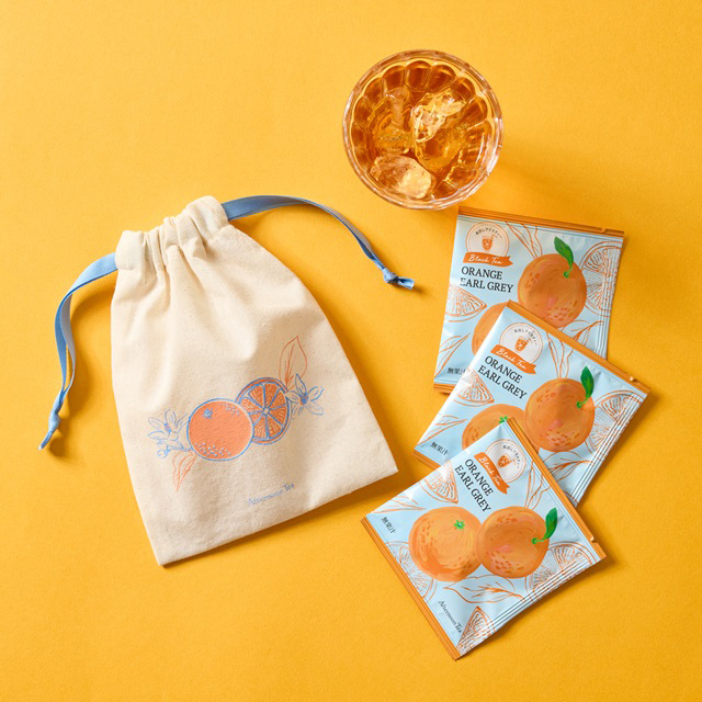 かわいいポーチにオレンジアールグレイの水出しアイスティーが入った、夏限定のティータイムセットです。