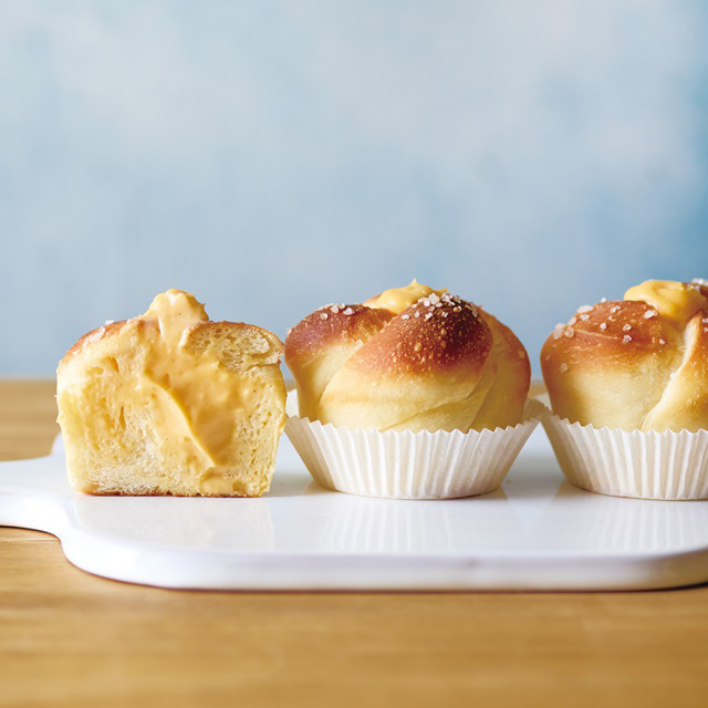 人気のホップス生地を使った塩バターパンに、自家製カスタードクリームを詰めました。程よい塩気のバターとクリームのハーモニーをお楽しみください。