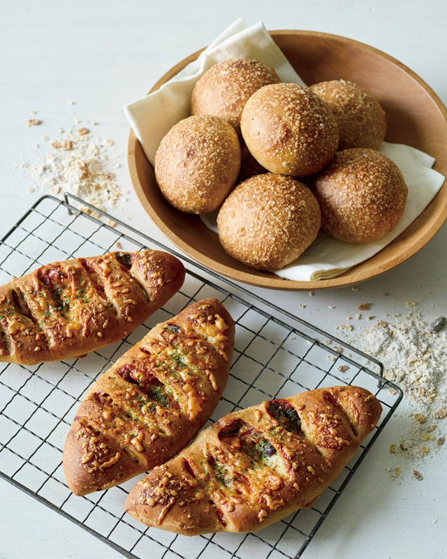 4種類の穀物(大豆・ライ麦・オートミール・ひまわりの種)と蜂蜜を使用しました。生地の風味をお楽しみください。