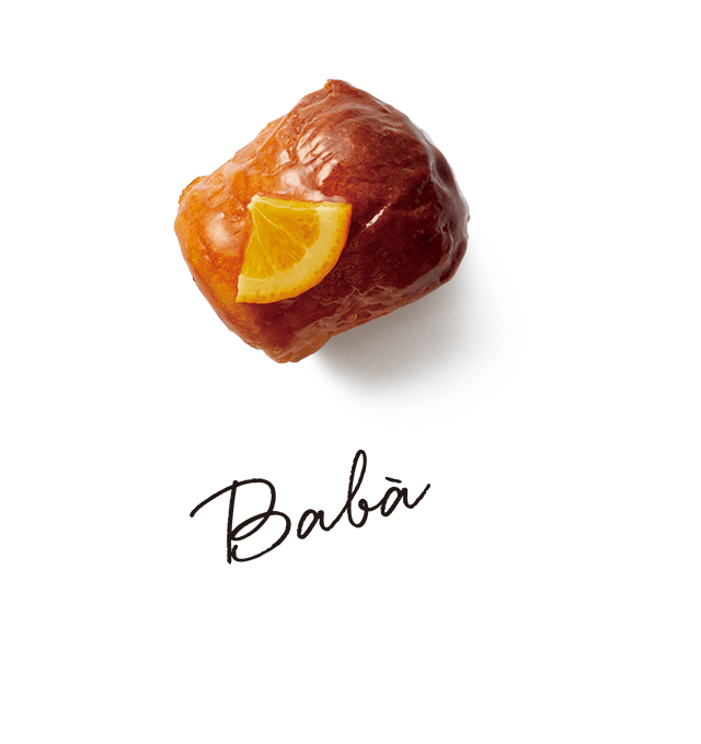 ブリオッシュにラム酒とオレンジキュラソを使ったシロップをたっぷりとしみ込ませました。ナパージュを塗って仕上げました。