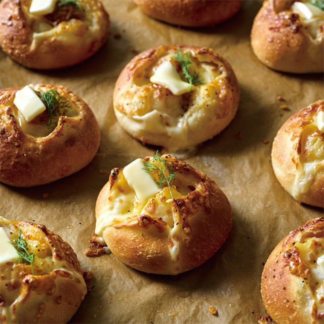 きたあかりと3種のチーズを合わせ「カルピス(株)バター」をトッピング。温めて溶かしバターとジャガイモの相性をお楽しみください。