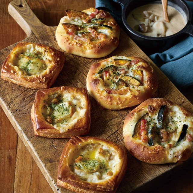 ローストチキン、きのこのソテーとホワイトソースをクロワッサン生地に合わせて焼き上げました。