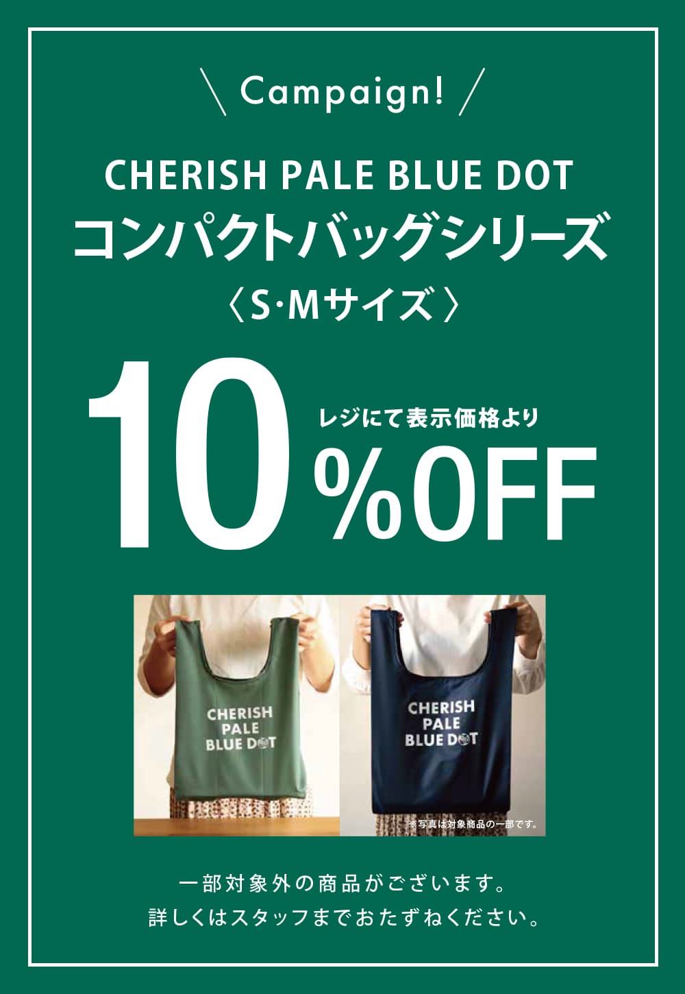 12/11~12/31までの期間限定で、「CHERISH PALE BLUE DOT」コンパクトバッグシリーズのS・Mサイズが期間限定10%OFF!
