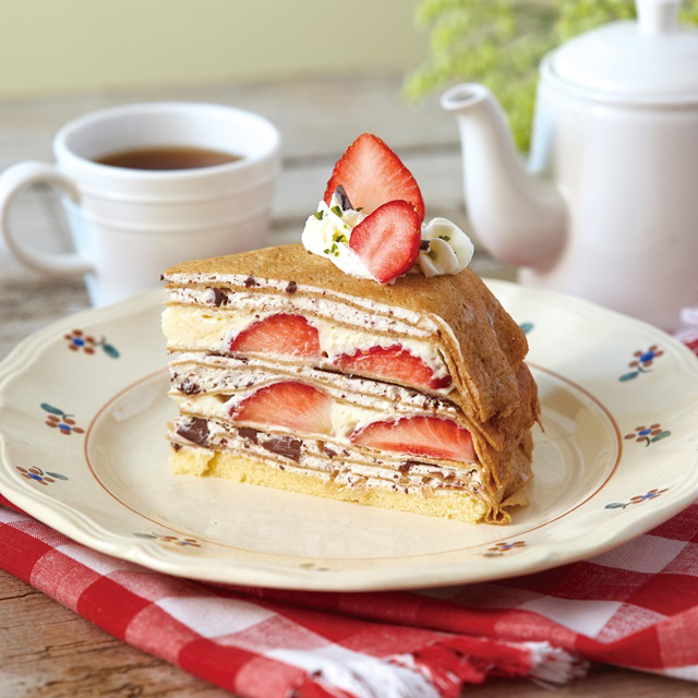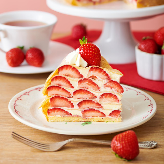 - 2026/3/19~4/22で「苺のミルクレープ(¥2,178)」を展開します。