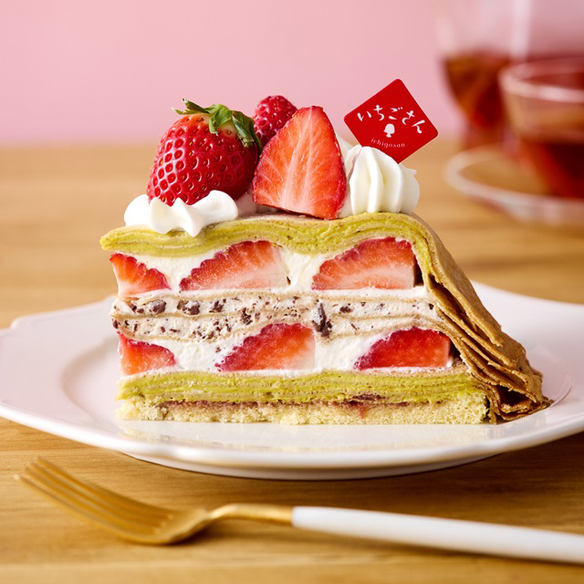 旬の苺をふんだんに使用し、ディプロマットクリームともちもち食感のクレープで5層に重ねました。