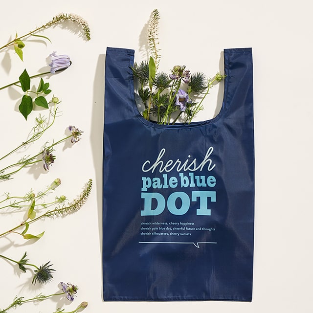 2020年6月から始めたSDGsプロジェクト「CHERISH PALE BLUE DOT(チェリッシュ ペイル ブルー ドット)」の取組の一つであるペットリサイクル素材を使用したエコバッグのデザインをリニューアル。