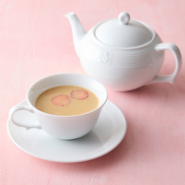 やさしい甘みの苺ミルクキャラメルソースに、ベルガモットがフルーティーに香るアールグレイを合わせました。