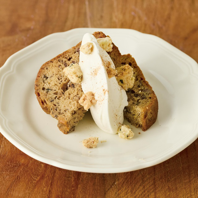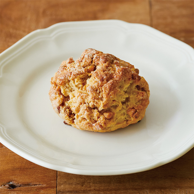 シナモンなどのスパイスを加えて焼き上げ、チーズホイップをサンド。