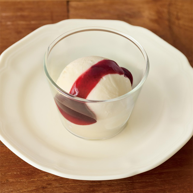 グレープルイボスに、巨峰、ティーゼリー、葡萄とブラックベリーのソースを合わせたフルーツエードティー。