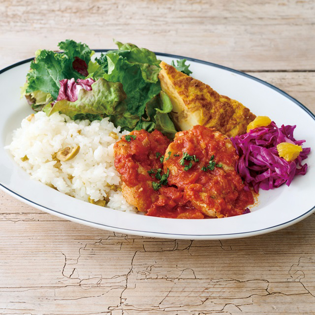 シーズンデリプレート チキンのトマト煮込みとスパニッシュオムレツ