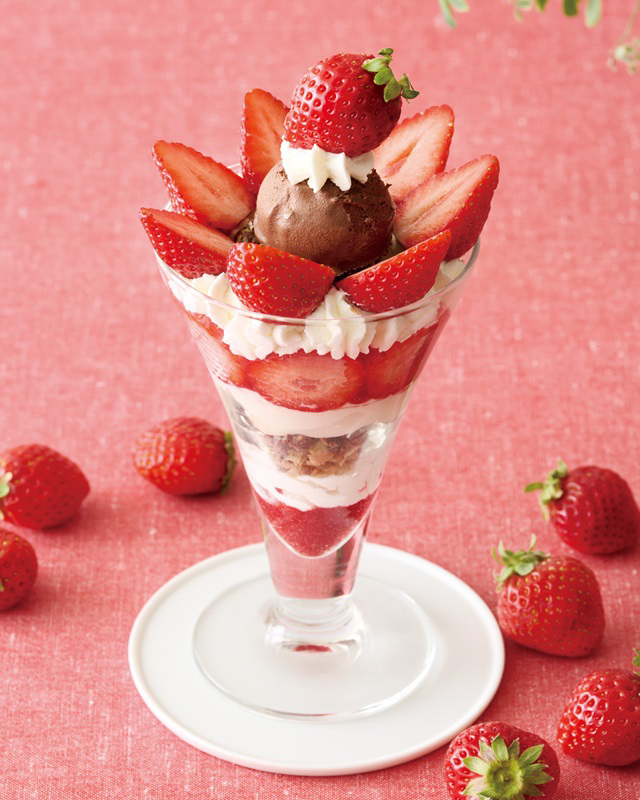 - あまおうとフランス産ショコラアイスのフレッシュフルーツパフェ