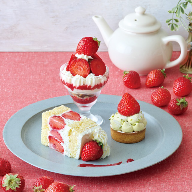 ティールームのテラスモール湘南、ららぽーと横浜、イオンレイクタウンkaze、名古屋ラシックでは、2026/3/5から、あかい・まるい・おおきい・うまい!4つの魅力がぎっしりと詰まったジューシーな味わいの「あまおう苺」のスイーツがお楽しみいただけます。