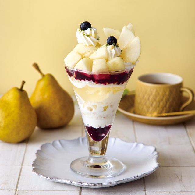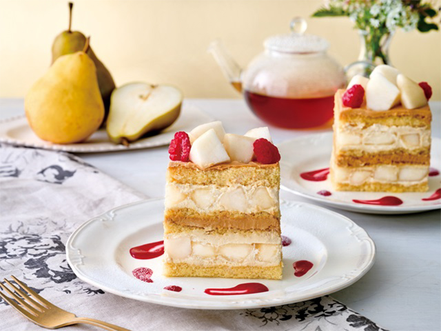 2025/11/6から、ティールームのテラスモール湘南、ららぽーと横浜、イオンレイクタウンkaze、名古屋ラシックでは、とろけるような果肉のラ・フランスを贅沢に使用したショートケーキやパフェがお楽しみいただけます。