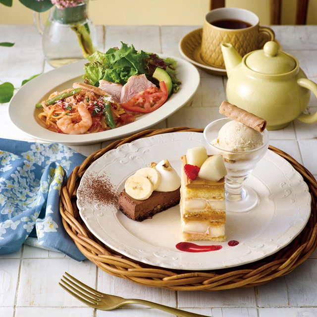 パスタとアフタヌーンティーセットの両方が楽しめる、季節限定のスペシャルセット。