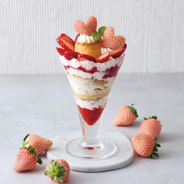 - フレッシュフルーツパフェ 苺とプリンのアラモード(1/8~、4店舗限定)