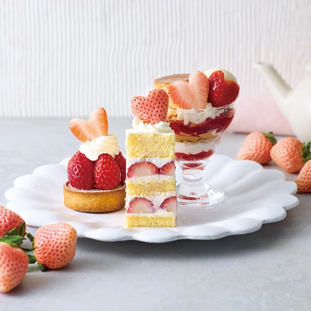 ティールームのテラスモール湘南、ららぽーと横浜、イオンレイクタウンkaze、名古屋ラシックでは、2026/1/8から、甘い香りと優しい甘さの苺がちりばめられた可愛らしいスイーツをお楽しみいただけます。また、2/13・2/14・2/15の3日間限定で、白い苺と赤い苺の2種の苺を使ったバレンタイン限定バージョンも登場します。