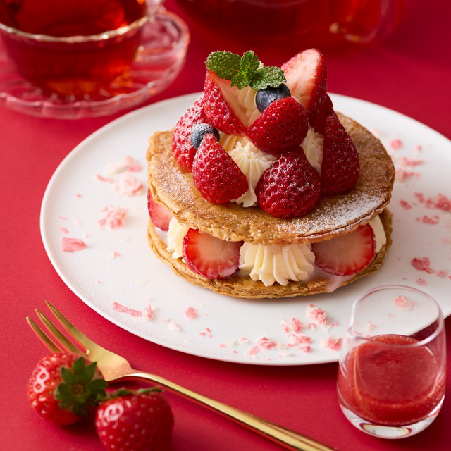 ティールームのルミネ有楽町、東京スカイツリータウン・ソラマチ、紙屋町シャレオでは、甘酸っぱい苺を使ったフルーツミルフィーユが、2025/12/26から順次登場します。