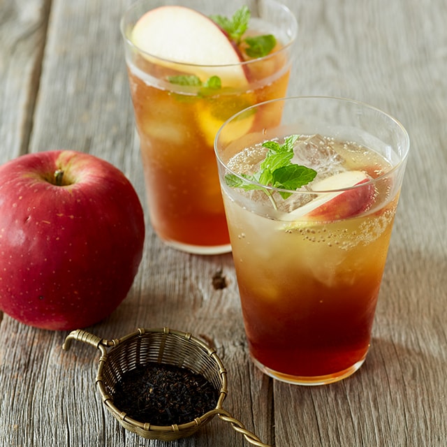 2倍の濃さで淹れた紅茶と同量の炭酸でつくるやさしい味わいのティーソーダ。