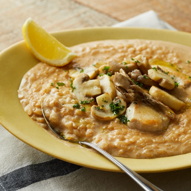 - ごはんがほぐれたらパルメザンチーズを加え、とろみがついたらお皿に盛る。