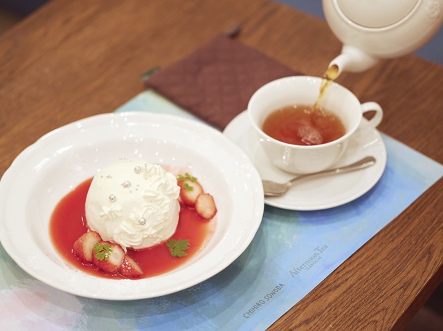 ワークショップのあとは、クリスマス限定メニューの「ホワイトスノードームケーキ」とティールームで定番人気の紅茶「アフタヌーンティーブレンド」が登場。