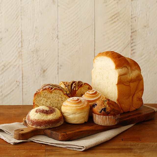 ベイカリーやティールームのパン取り扱い店舗では、テイクアウトでご利用いただけるパンを展開しております。こだわりの食パンをはじめ、紅茶によく合うスイーツブレッドなどのレギュラーメニューのほか、毎月変わるおすすめのパンもご用意。
